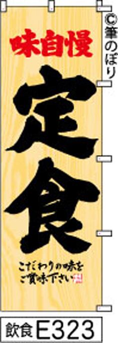 【定食】のぼり旗|送料無料 目立つ手書き筆文字[e323]木目柄に黒