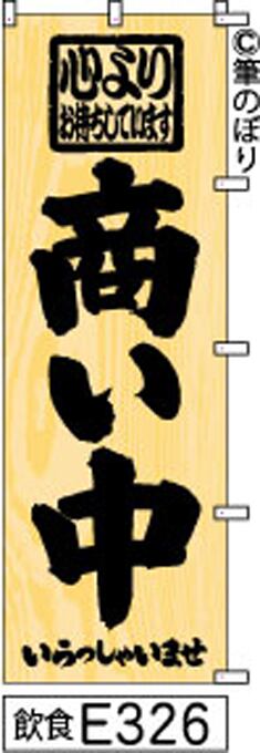 【商い中】のぼり旗|送料無料 目立つ手書き筆文字[e326]木目柄に黒