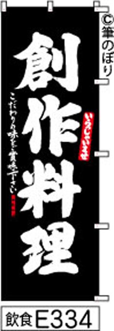 【創作料理】のぼり旗|送料無料 目立つ手書き筆文字[e334]黒白抜き