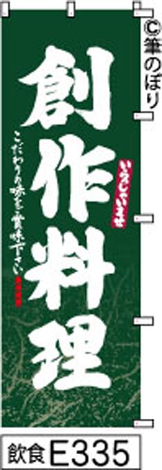 【創作料理】のぼり旗|送料無料 目立つ手書き筆文字[e335]緑和紙柄白抜き