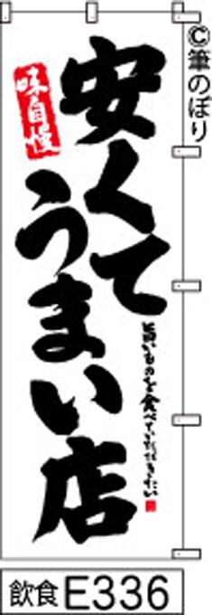 【安くてうまい店】のぼり旗|送料無料 目立つ手書き筆文字[e336]白地に黒