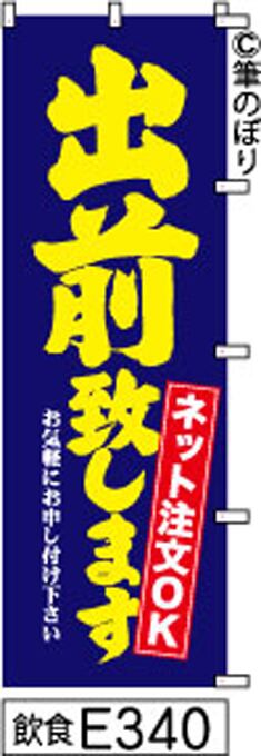 【出前ネット注文OK】のぼり旗|送料無料 目立つ手書き筆文字[e340]青に黄色
