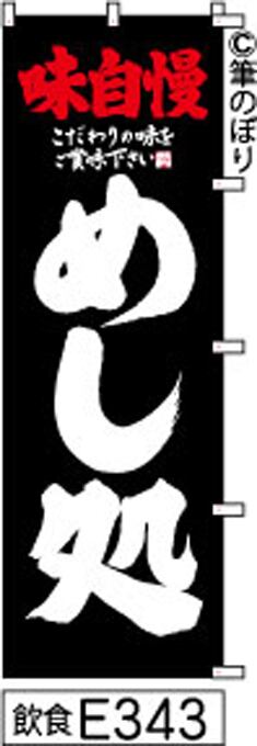 【めし処】のぼり旗|送料無料 目立つ手書き筆文字[e343]黒白抜き