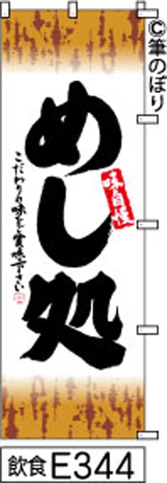 【めし処】のぼり旗|送料無料 目立つ手書き筆文字[e344]白地に竹皮柄黒