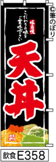 【天丼】のぼり旗|送料無料 目立つ手書き筆文字[e358]黒に赤
