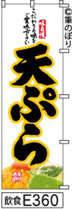 【天ぷら】のぼり旗|送料無料 目立つ手書き筆文字[e360]白地に黒