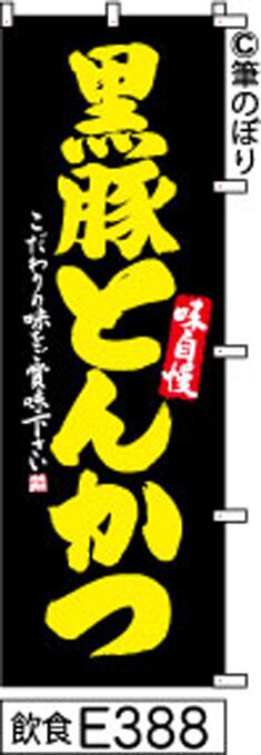 【黒豚とんかつ】のぼり旗|送料無料 目立つ手書き筆文字[e388]黒に黄色