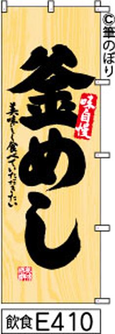 【釜めし】のぼり旗|送料無料 目立つ手書き筆文字[e410]木目模様に黒