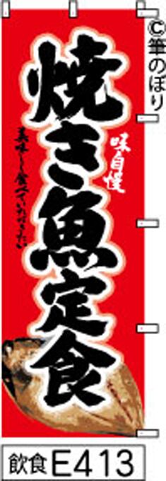 【焼き魚定食】のぼり旗|送料無料 目立つ手書き筆文字[e413]赤に黒