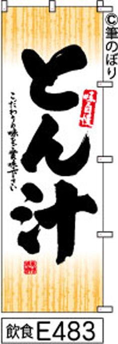 【とん汁】のぼり旗|送料無料 目立つ手書き筆文字[e483]白地に薄茶和模様黒