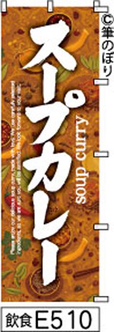 【スープカレー】のぼり旗|送料無料 目立つ手書き筆文字[e510]香辛料柄に白