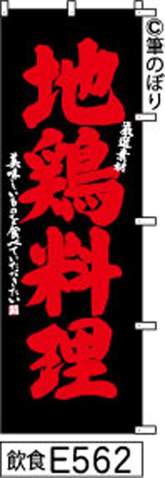 【地鶏料理】のぼり旗|送料無料 目立つ手書き筆文字[e562]黒に赤