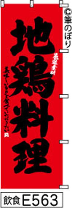 【地鶏料理】のぼり旗|送料無料 目立つ手書き筆文字[e563]赤に黒