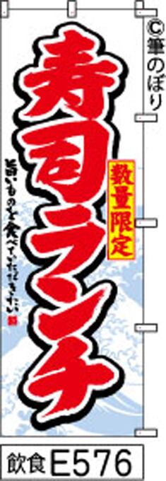【寿司ランチ】のぼり旗|送料無料 目立つ手書き筆文字[e576]白地に波柄赤