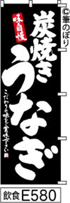 【炭焼きうなぎ】のぼり旗|送料無料 目立つ手書き筆文字[e580]黒に白