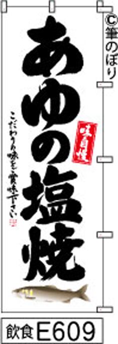 【あゆの塩焼き】のぼり旗|送料無料 目立つ手書き筆文字[e609]白地に黒