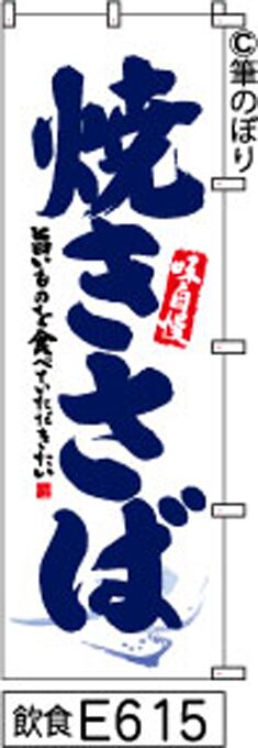 【焼きさば】のぼり旗|送料無料 目立つ手書き筆文字[e615]白地に紺