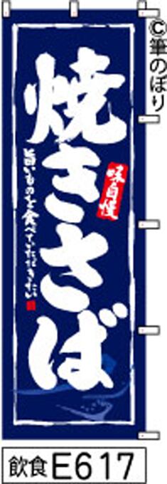 【焼きさば】のぼり旗|送料無料 目立つ手書き筆文字[e617]紺に白