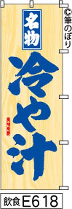 【冷や汁】のぼり旗|送料無料 目立つ手書き筆文字[e618]木目柄に青