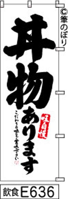 【丼物】のぼり旗|送料無料 目立つ手書き筆文字[e636]白地に黒