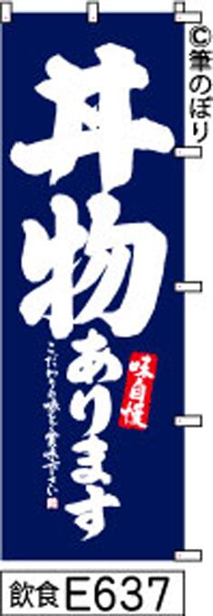 【丼物】のぼり旗|送料無料 目立つ手書き筆文字[e637]紺に白