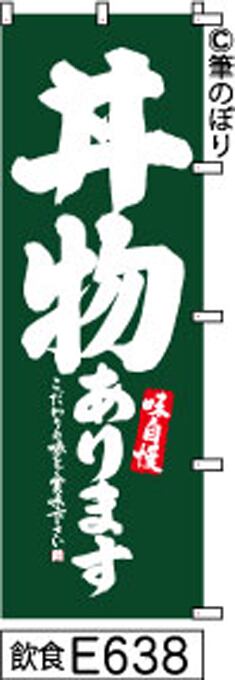【丼物】のぼり旗|送料無料 目立つ手書き筆文字[e638]緑に白