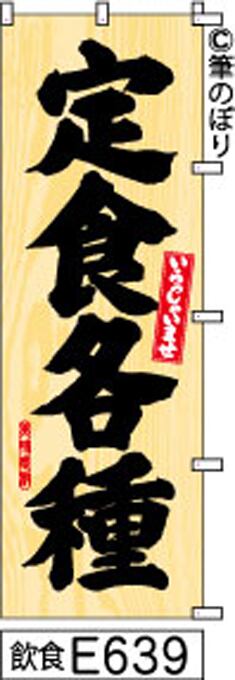 【定食各種】のぼり旗|送料無料 目立つ手書き筆文字[e639]木目柄に黒