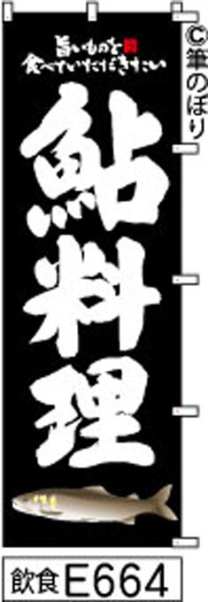 【鮎料理】のぼり旗|送料無料 目立つ手書き筆文字[e664]黒に白
