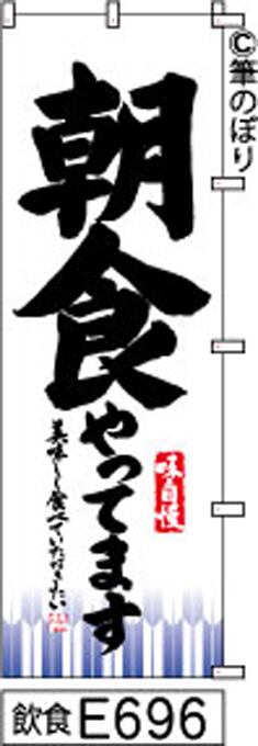 【朝食やってます】のぼり旗|送料無料 目立つ手書き筆文字[e696]白地に黒