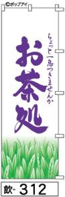 「のぼり【お茶処】白地に紫の手書き筆文字[飲312](商標登録番号6807113)『受注生産』」