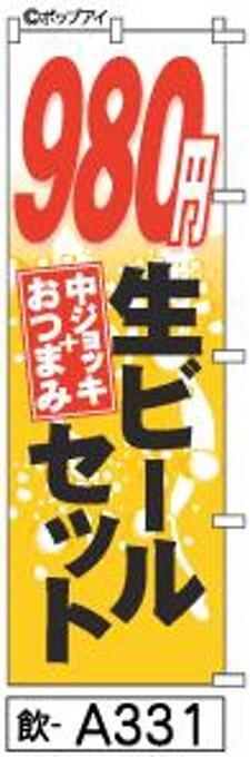 「のぼり【生ビールセット】黄色に赤と黒の文字[飲A331](商標登録番号6807113)『受注生産』」