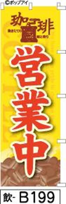 「のぼり【コーヒー営業中】黄色に赤文字[飲B199](商標登録番号6807113)『受注生産』」