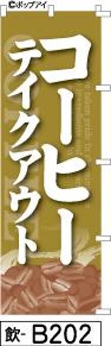 「のぼり【コーヒーテイクアウト】金の白抜き文字[飲B202](商標登録番号6807113)『受注生産』」