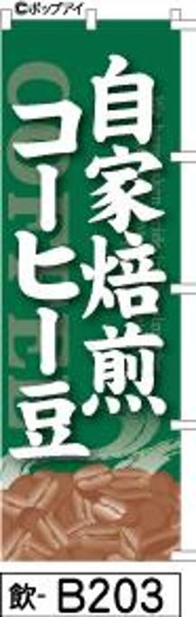 【自家焙煎コーヒー豆】のぼり旗|送料無料 目立つ手書き筆文字[b203]緑白抜き文字