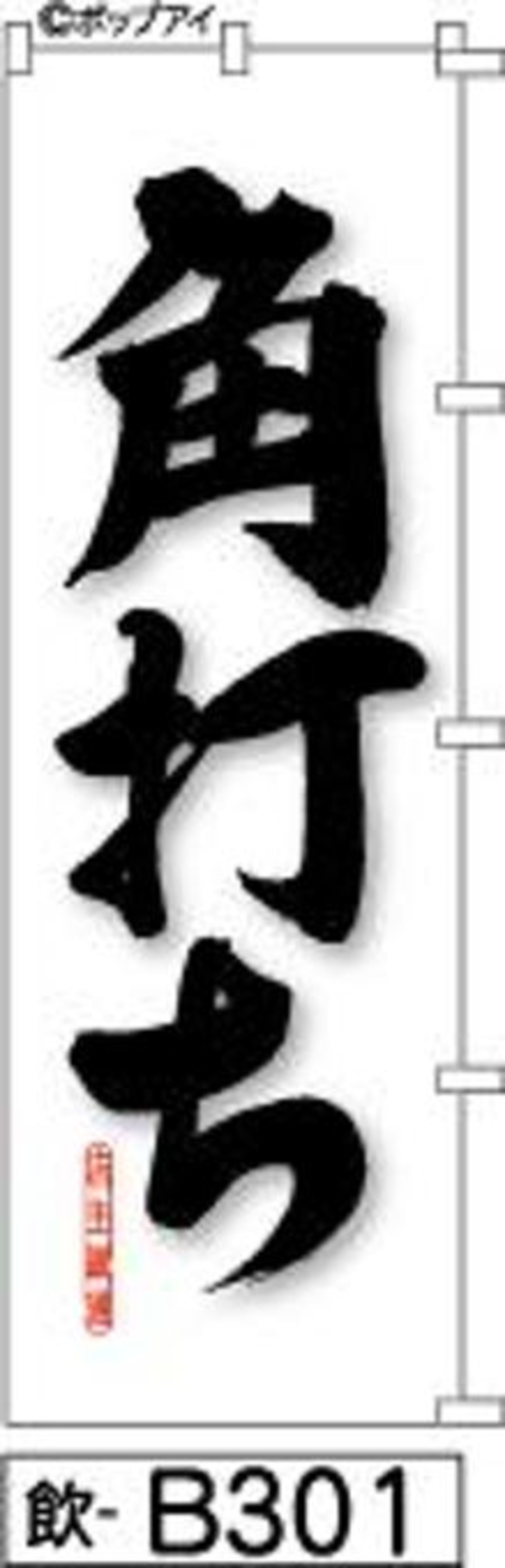 「のぼり【角打ち】白に黒の手書き筆文字[飲B301](商標登録番号6807113)『受注生産』」