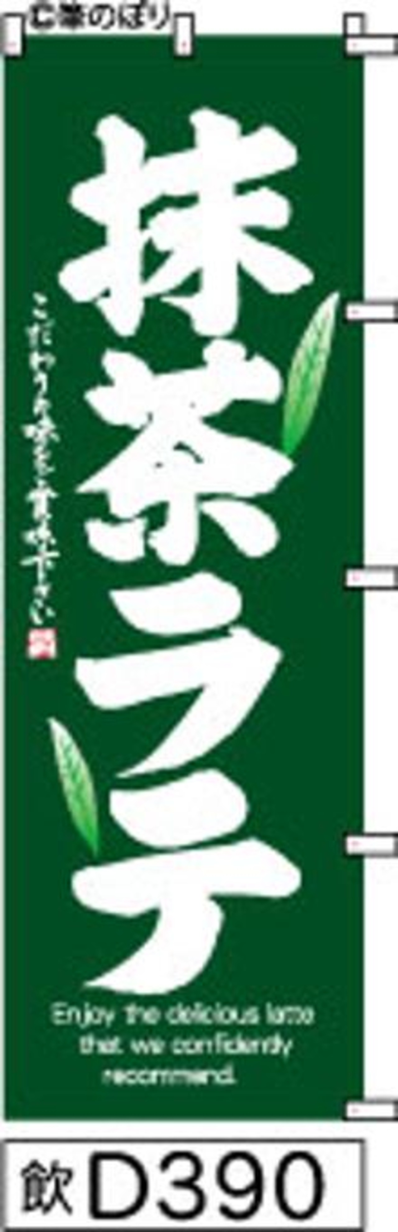 【抹茶ラテ】のぼり旗|送料無料 目立つ手書き筆文字[d390]濃緑白抜き