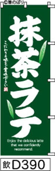 「のぼり【抹茶ラテ】濃緑の白抜き手書き筆文字[飲D390](商標登録番号6807113)『受注生産』」