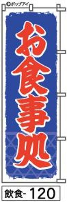 「のぼり【お食事処】青に赤文字手書き筆文字[飲食120](商標登録番号6807113)『受注生産』」