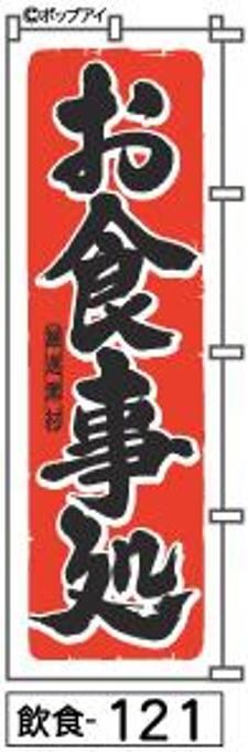 「のぼり【お食事処】赤に黒文字手書き筆文字[飲食121](商標登録番号6807113)『受注生産』」