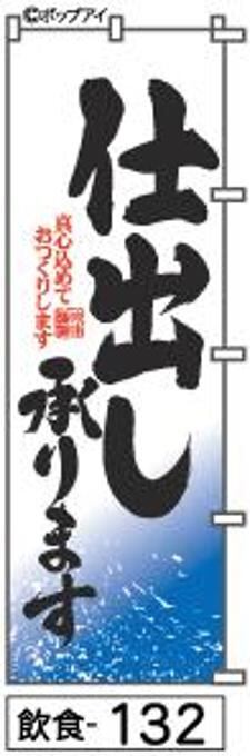 【仕出し承ります】のぼり旗|送料無料 目立つ手書き筆文字[132]白地に黒
