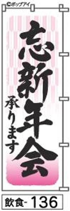 「のぼり【忘新年会】手書き筆文字[飲食136](商標登録番号6807113)『受注生産』」