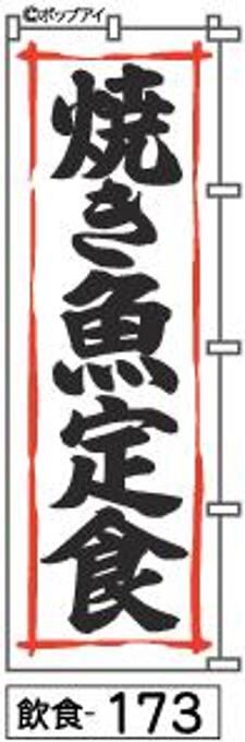 【焼き魚定食】のぼり旗|送料無料 目立つ手書き筆文字[173]白地に黒