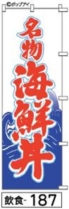 【海鮮丼】のぼり旗|送料無料 目立つ手書き筆文字[187]青波に赤