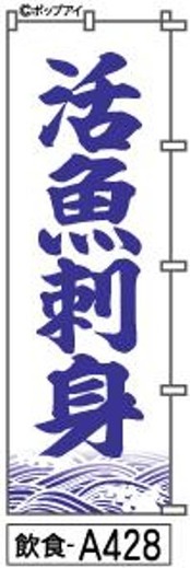 白地に映える紺文字で表現された「活魚刺身」は、シンプルながらも強い存在感を放ちます。こののぼりを掲げることで、活魚刺身の魅力が引き立ち、多くのお客様の視線を集めることが期待できます!