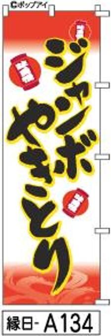 【ジャンボやきとり】のぼり旗|送料無料 目立つ手書き筆文字[a134]白地に赤模様黒
