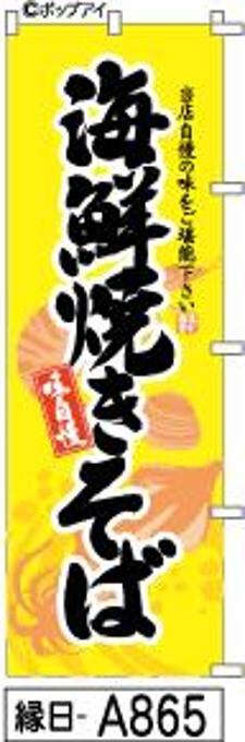 「のぼり 【海鮮焼きそば】 黄色手書き筆文字[縁日A865](商標登録番号6807113)」
