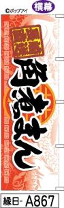 横幕【角煮まん】のぼり旗|送料無料 目立つ手書き筆文字[a867]赤中華柄黒
