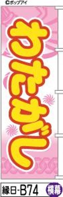 横幕【わたがし】のぼり旗|送料無料 目立つ手書き筆文字[b074]ピンクに黄色文字