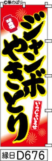「のぼり【ジャンボやきとり】白地に赤模様黒の手書き筆文字[縁日D676](商標登録番号6807113)」