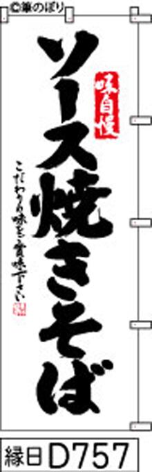 「のぼり 【ソース焼きそば】 白地に黒の手書き筆文字 縁日D757(商標登録番号6807113)」